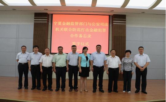 为有效预防和打击金融犯罪,?;ね蹲收吆戏ㄈㄒ?,确保辖区金融行业稳定健康发展,宁夏证监局、中国人民银行银川中心支行、宁夏银监局、宁夏保监局经与自治区高院、检察院、公安厅充分协商,就建立联合防范和打击金融犯罪工作协调机制达成一致,并于2015年7月16日共同签署《宁夏金融监管部门与公安司法机关联合防范打击金融犯罪合作备忘录》(以下简称“合作备忘录”)。