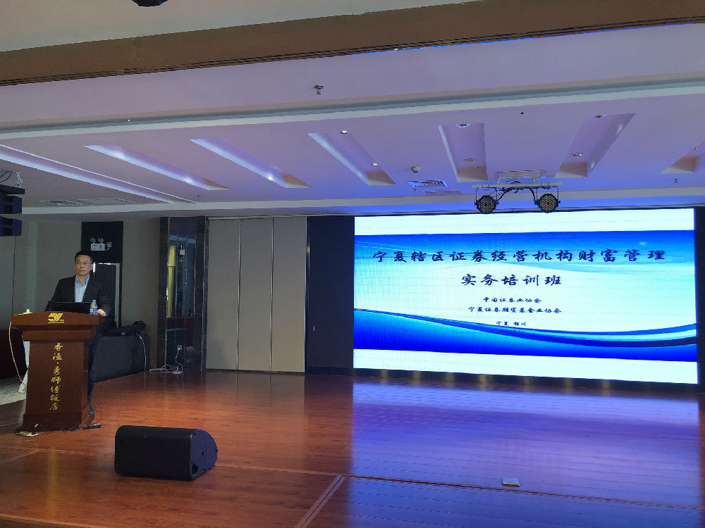 为帮助宁夏辖区证券经营机构开展财富管理业务,交流财富管理实务工作经验,提升销售实战能力,中国证券业协会与宁夏证券期货基金业协会于2019年8月31日在银川联合举办”宁夏辖区证券经营机构财富管理实务培训班”。来自辖区内58家证券期货经营机构负责人及业务骨干约230人参加了本次培训。培训班由协会常务副会长、秘书长冒万成主持。