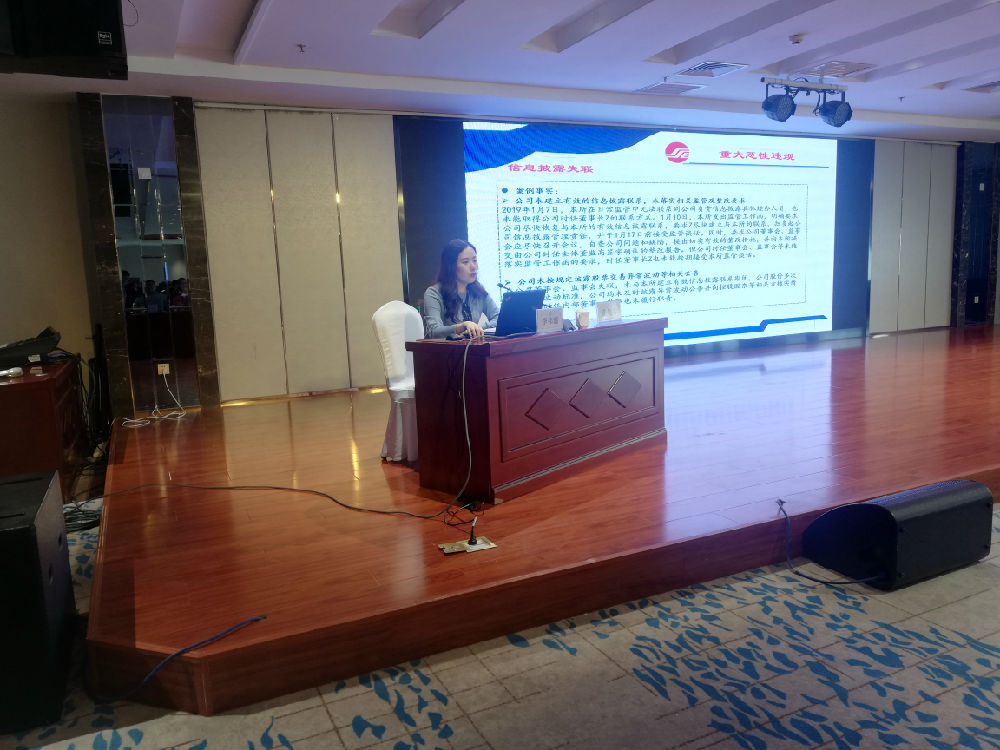 培训邀请上交所公司监管一部李祎璐老师现场授课。李老师以上市公司纪律处分概况与信息披露违规案例为主线,重点讲解了纪律处分业务概况、典型案例分析和纪律处分工作机制,分析了上市公司在信息披露内容、流程和责任落实等方面应当关注的要点,介绍了当前信息披露违规特点及新型违规案例,让现场的董监高们充分了解违规处理的总体逻辑和基本思路;切实强化了上市公司董监高的责任意识,杜绝违规事件发生。