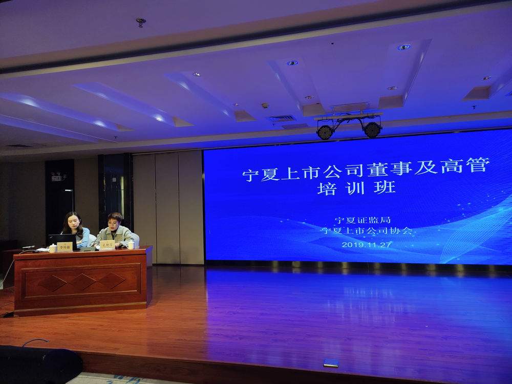 为进一步提高宁夏辖区上市公司董事及高管人员履职意识,增强履职能力,提升上市公司治理水平,满足上公司高管持续学习的需求,2019年11月27日,宁夏上市公司协会举办上市公司董监高培训班。辖区13家上市公司150余名高管参加此次培训。
