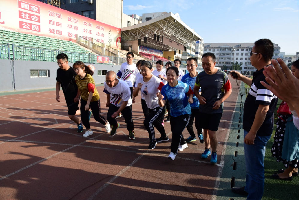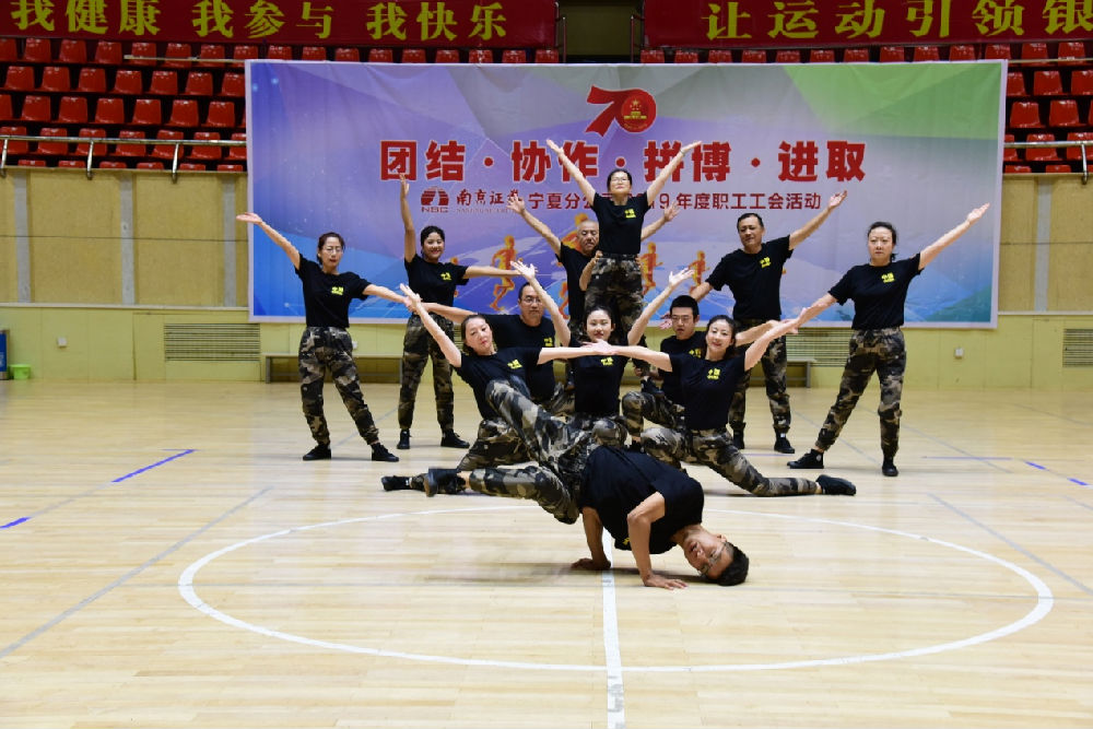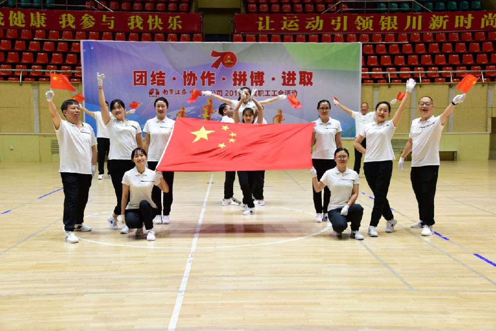 8月25日 ,南京证券宁夏分公司全体员工齐聚在银川市湖滨体育场,举办主题为“团结、协作、拼搏、进取” 的2019年度职工健身活动?;疃治较畋热直鹞?人800米慢跑快走和队列队形表演。在宁夏分公司副总经理、工会主席杨晓东同志发表讲话后,活动拉开帷幕。
