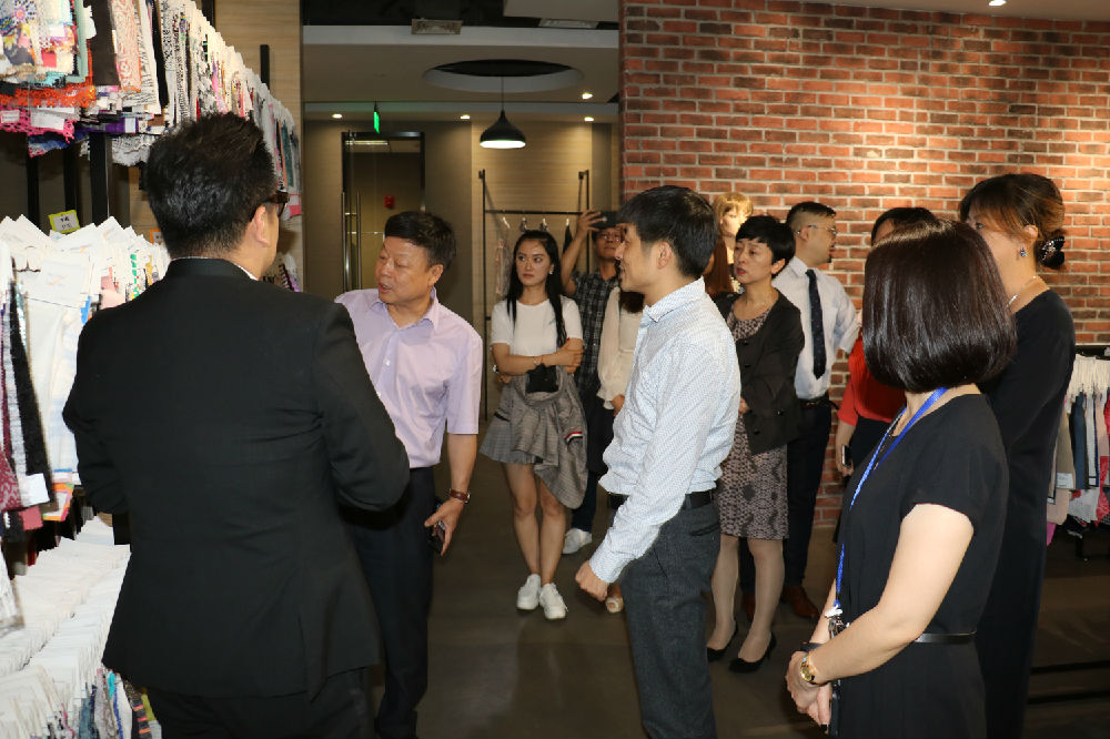 会后,马炜局长等领导一行又驱车前往烨歆贸易,深入了解公司业务运营情况,就服装产品打样、设计及供应链管理等具体工作环节进行视察。