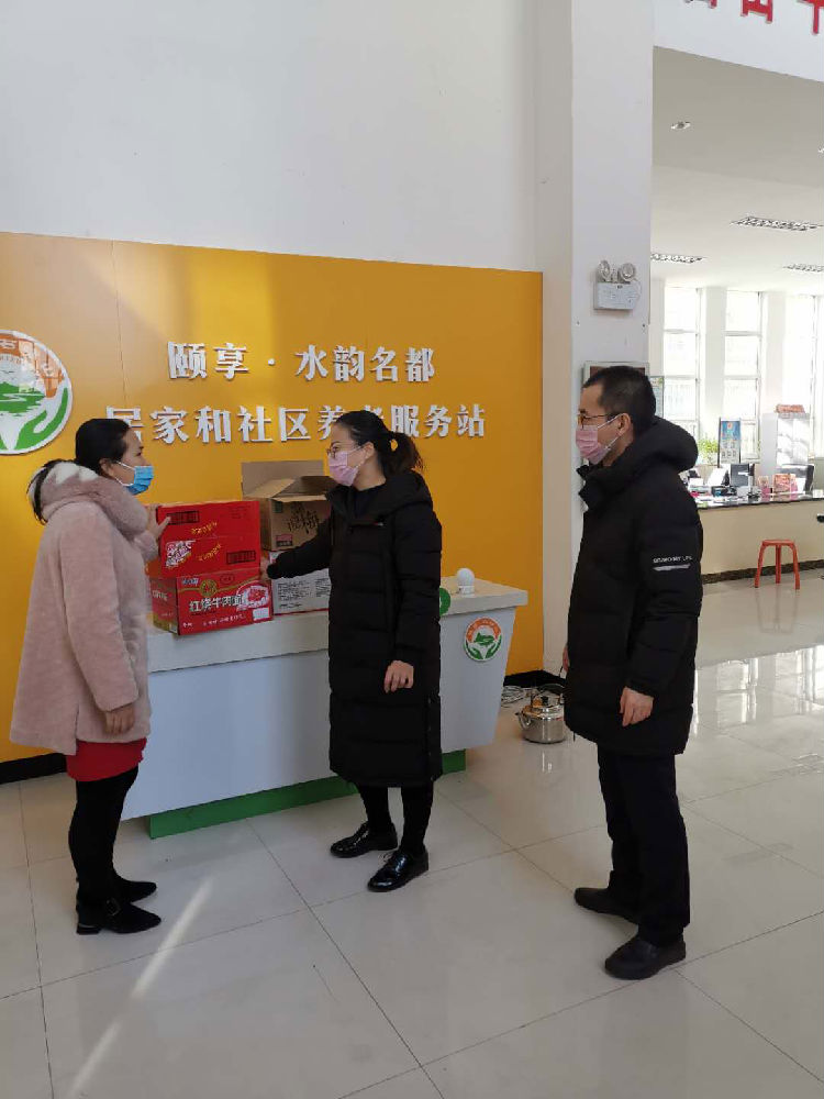 为社区送去了食品、饮料、水果、手套等爱心防控物资