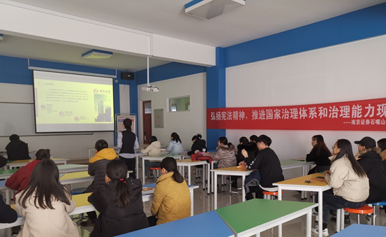 活动期间,营业部组织员工积极参加“宁夏法制”微信公众号平台以“奋进新时代 人人学宪法”为主题的宪法知识有奖竞答活动,进一步充实了员工的宪法知识,增强了员工尊法守法意识;在惠农区文景广场组织了现场咨询活动,为广大市民讲解宪法知识;走进位于大武口的宁夏理工学院,为大学生既普及宪法知识,重点宣传习近平新时代中国特色社会主义思想,特别是关于宪法的重要论述;又着重介绍新中国宪法发展历程、宪法的地位和作用,宪法的基本原则和主要内容。