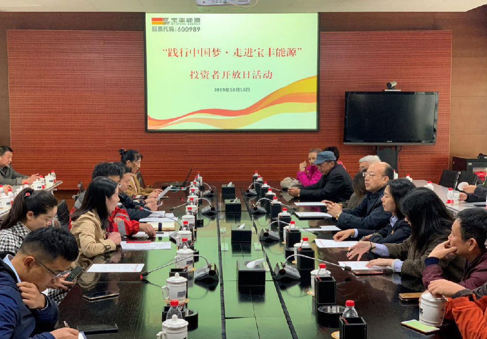 10月16日上午,来自宁夏区内的39位投资者及多家投资机构前往位于宁东能源化工基地的宝丰能源循环经济产业基地实地考察参观。