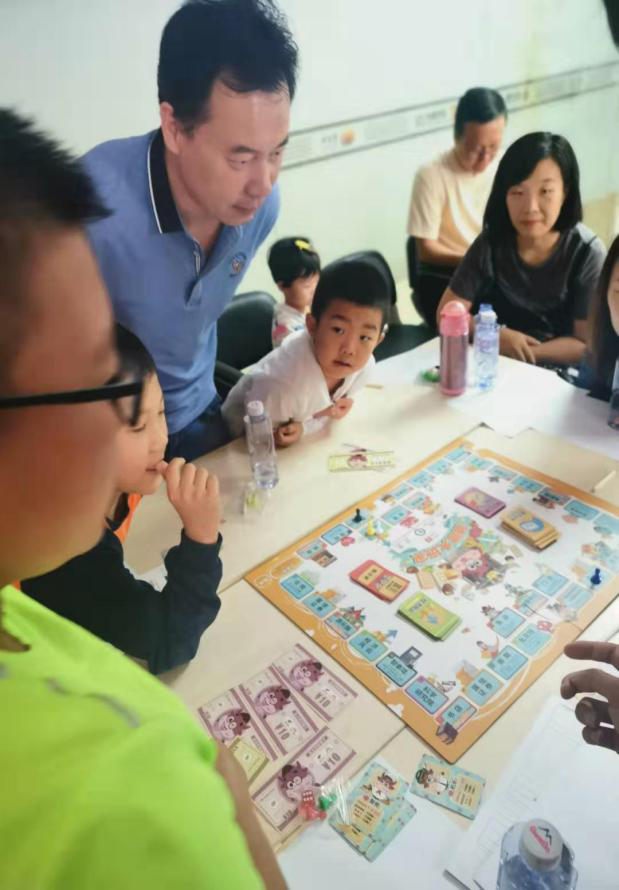 活动第二部分,是“财赋大玩家”游戏板块。这一环节可以说是把此次活动推向了高潮,孩子们热情高涨,家长们在旁边仔细观察孩子的表现,但是不能帮助孩子去决策。通过游戏,孩子们接触到了很多金融产品和投资品,如股票、基金、银行存款、医疗和意外保险以及面包店与店铺等,让孩子第一次意识到生活中的各项开支与可能碰到的各类风险,第一次去思考如何投资理财。一个经典的场景是:宝贝的出生,增加了家庭每个月的支出,让孩子第一次体会到了父母养育自己的辛苦。