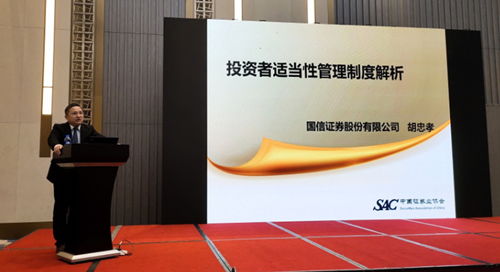 培训由宁夏证券期货基金业协会常务副会长兼秘书长冒万成主持,中国证券业协会面授培训讲师--国信证券经纪事业部副总裁胡忠孝博士为参训学员授课。宁夏证监局机构处负责人参加会议,并对辖区证券期货经营机构就投资者适当性管理、规范运作及提升服务等方面提出具体要求。