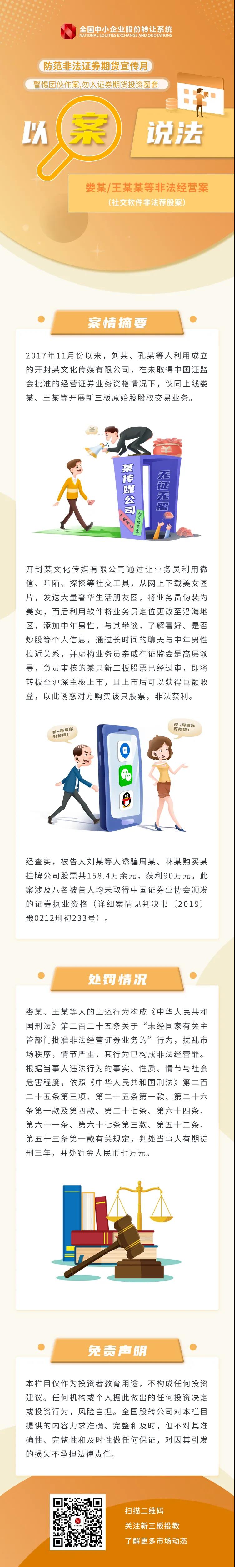 【编者按】近年来,屡有不法分子冒充正规证券经营机构,通过社交软件、相亲网站等渠道,散布虚假“消息”,以高额投资收益诱骗投资者通过非正当途径购买新三板股票,导致投资者遭受损失。全国股转公司投教基地根据近期收集的已宣判案件,提示投资者甄别非法证券活动,有效识别风险,合规参与市场。