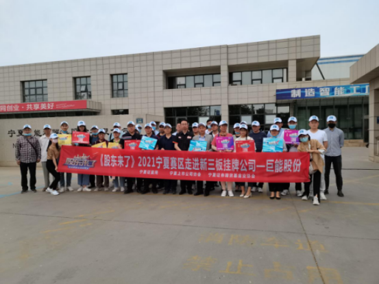 6月11日,在宁夏证监局指导下,宁夏上市公司协会、宁夏证券期货基金业协会联合开源证券宁夏分公司、国泰君安证券银川解放西街营业部、东方证券银川民族北街营业部、广发证券银川民族南街营业部共同举办《股东来了》2021宁夏赛区走进新三板挂牌公司—巨能股份。宁夏证监局机构处负责人、协会负责人,证券机构员工、投资者代表共计40余人参加活动。宁夏巨能机器人股份有限公司财务总监王玉婷、董秘麻辉热情接待投资者,陪同参观并与投资者进行互动交流。