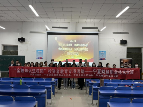 为深入推动金融知识普及和金融消费者教育工作,帮助在校大学生更好掌握所需金融知识,提高自我?;ひ馐逗头缦辗婪兑馐?,在宁夏证监局的指导下,宁夏证券期货基金业协会、宁夏上市公司协会联合华龙期货宁夏分公司以“金融知识普及月”为契机,于9月15日成功组织2021年“金融知识进校园”走进宁夏财经职业技术学院投教专项活动。宁夏财经职业技术学院200余名师生参加了活动。