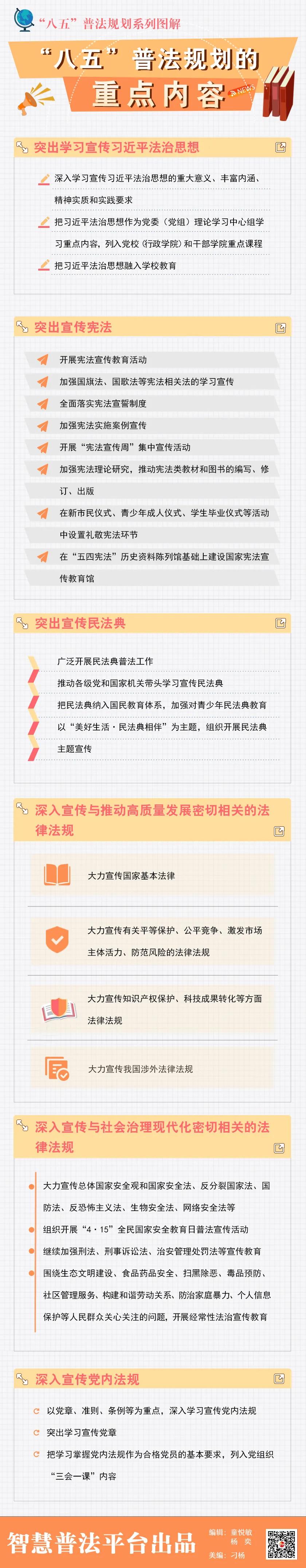 本期宣传内容为:《“八五”普法规划的重点内容》,请您浏览海报,了解详细内容。