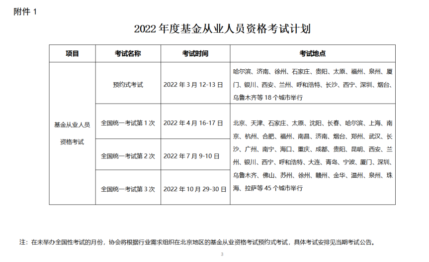 中国证券投资基金业协会现将2022年度考试计划公开发布,有关事项通知如下: