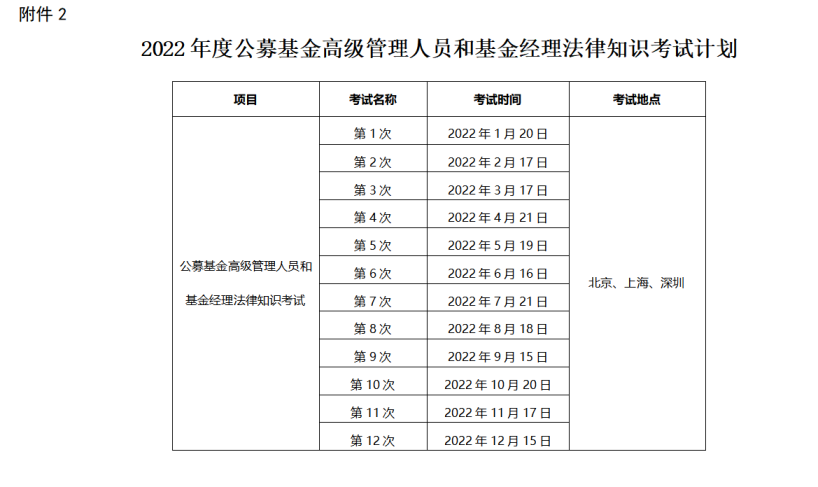 2、公募基金高级管理人员和基金经理法律知识考试拟在北京、上海、深圳举办12次。