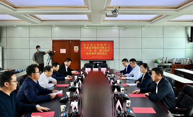 为深入学习习近平总书记关于深化东西部协作和定点帮扶工作的重要指示精神,认真贯彻闽宁协作第二十五次联席会议精神,积极落实证券行业促进乡村振兴公益行动,持续深化闽宁对口协作,巩固脱贫攻坚成果、接续推进乡村全面振兴。在宁夏证监局的大力支持下,5月24—27日,兴业证券分别与宁夏海原县、西吉县政府签署了“一司一县”闽宁协作结对帮扶协议。这是兴业证券在在持续巩固之前闽宁协作帮扶成果基础上,聚焦乡村产业振兴,促进共同富裕的又一重要成果。