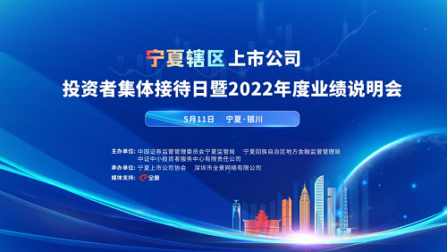 在第五届“5·15”全国投资者?;ば绽戳僦?,5月11日下午,由中国证券监督管理委员会宁夏监管局、宁夏回族自治区地方金融监督管理局、中证中小投资者服务中心有限责任公司主办,宁夏上市公司协会、深圳市全景网络有限公司承办的“宁夏辖区上市公司投资者集体接待日暨2022年度业绩说明会”在银川圆满举行。这也是宁夏辖区自2008年7月举办国内第一场地区集体接待日活动以来连续第十六年举办该活动。