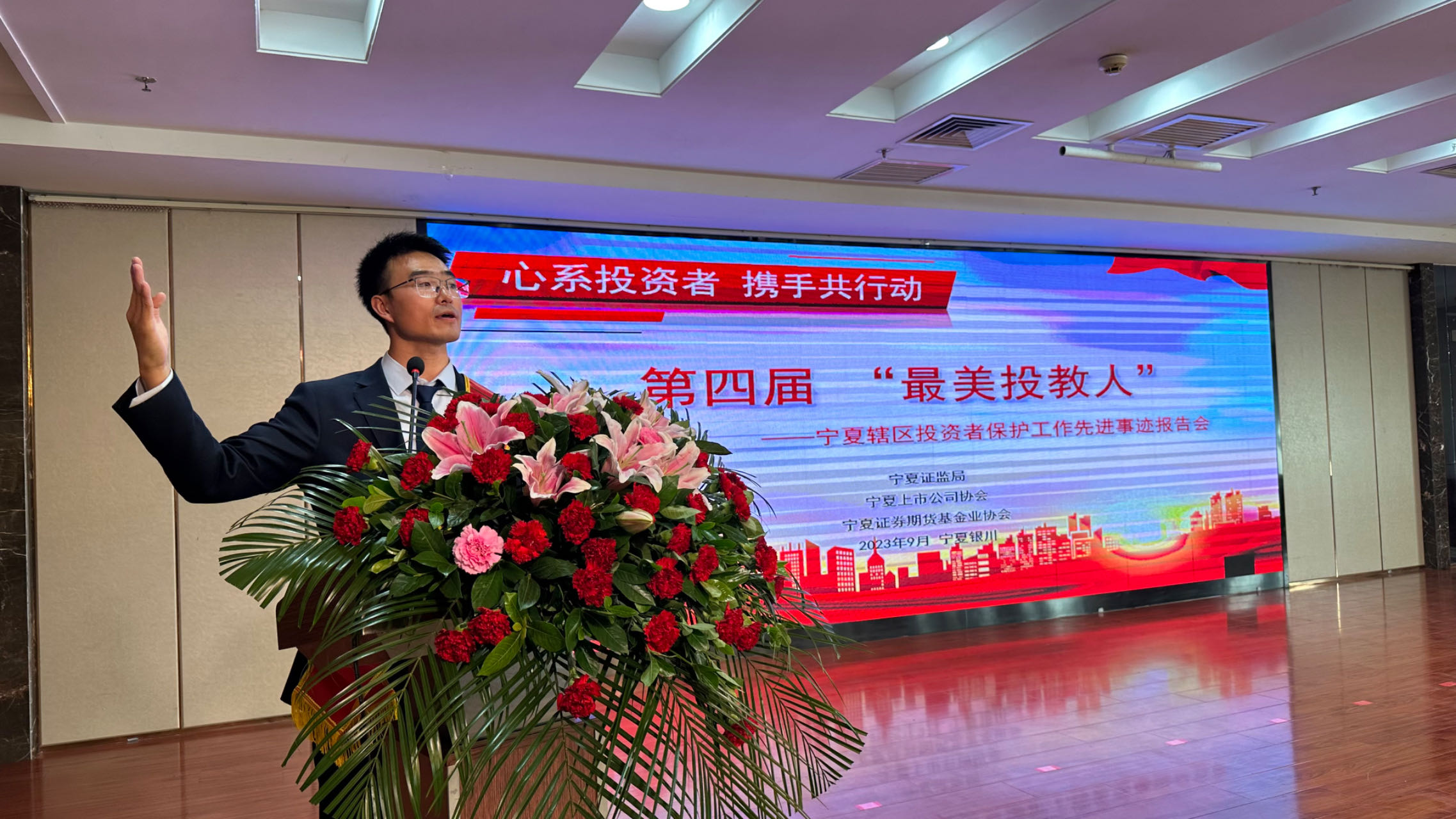 为深入贯彻落实投资者?;すぷ鳎嘤硇酝蹲饰幕?/span>,9月19日下午,在宁夏证监局的指导下,宁夏证券期货基金业协会、宁夏上市公司协会联合举办第四届“最美投教人”宁夏辖区投资者?;すぷ飨冉录1ǜ婊?。宁夏证监局、中国人民银行宁夏分行、国家金融监督管理总局宁夏监管局、自治区地方金融监管局及辖区投资者、证券期货经营机构、上市公司、新闻媒体代表共计150余人参加。