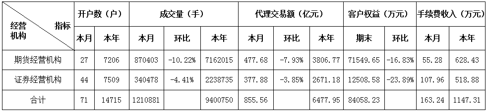 (数据来源:中国证监会网站、证监会机构监管系统、Wind资讯及辖区各证券期货经营机构、基金代销机构月度报表。)