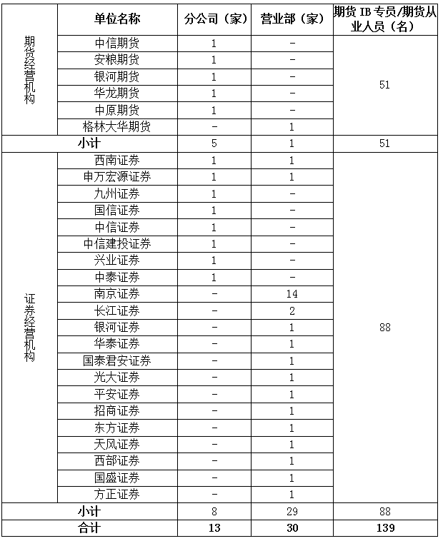 序号 | 单位名称 | 分公司(家) | 营业部(家) |