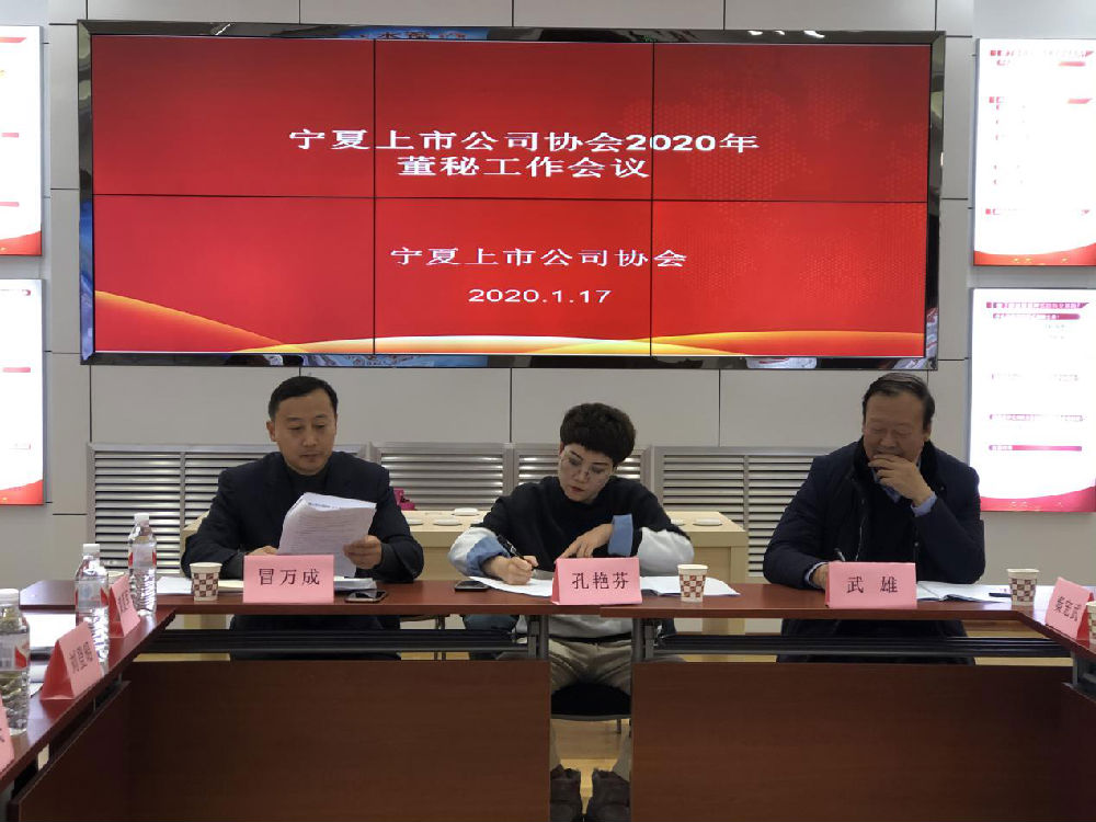 为加强辖区上市公司董秘之间的交流,广泛征求董秘意见,促进协会2020年工作开展,宁夏上市公司协会于1月17日组织召开2020年董秘工作会议。辖区上市公司董秘、证代参加了会议。会议由协会秘书长武雄主持,宁夏证监局相关领导列席会议。
