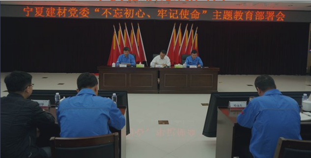 2019年9月20日,宁夏建材召开“不忘初心、牢记使命”主题教育部署会。中国建材股份纪委副书记、第三巡回指导组组长王迎财同志出席并讲话。第三巡回指导组成员刘清华,公司党委书记、董事长尹自波等班子成员、职能部室全体党员及公司所属企业班子成员、党员230余人通过现场与视频的方式参加了会议?;嵋橛晒镜澄笔榧恰⒏倍鲁だ钣澜鞒?。