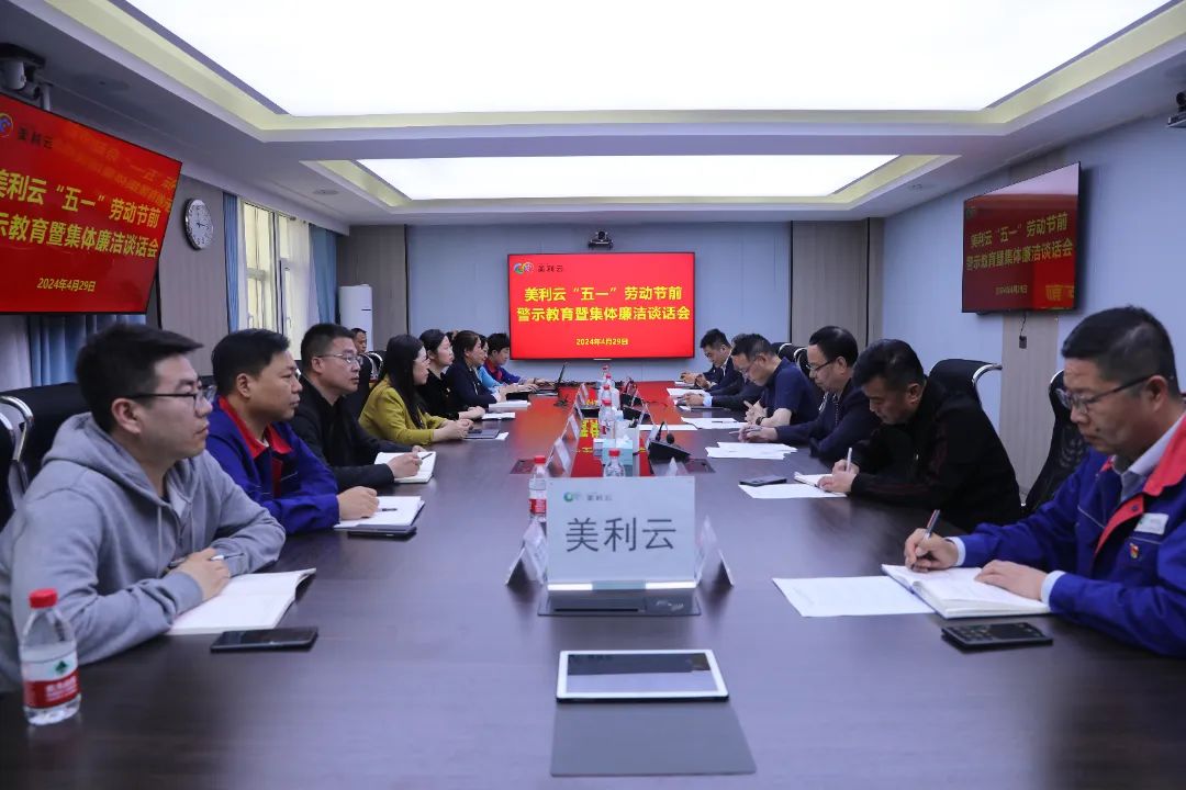 “五一”劳动节将至,为深入贯彻落实中央八项规定精神,推动党纪学习教育走深走实,进一步教育引导广大党员干部筑牢拒腐防变思想防线,4月29日,美利云召开2024年“五一”节前警示教育暨集体廉洁谈话会。