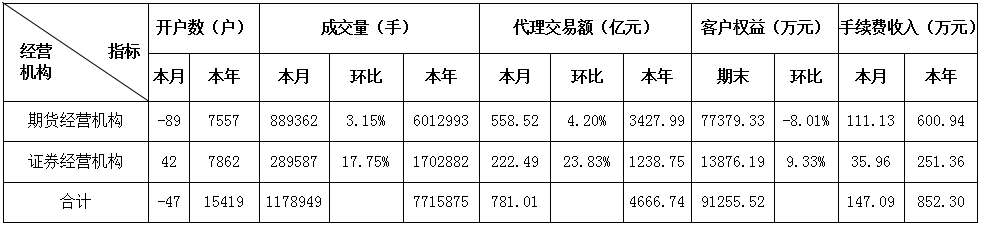 本月开设证券账户0.92万户,开设资金账户0.60万户。