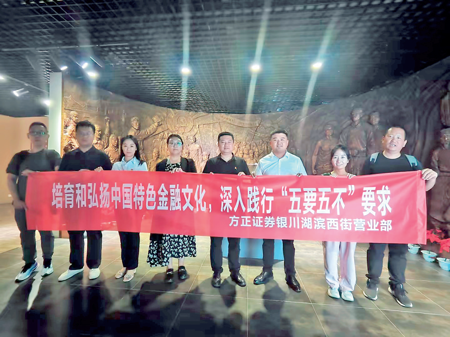 组织员工参观银川党史馆,通过参观使我部员工深入了解了党在各个历史时期的光辉历程,从党史中感悟了共产党人的初心和使命,全体成员纷纷表示要以高度的历史责任感自觉继承和发扬党的优良传统,弘扬伟大建党精神,在以中国式现代化推进中华民族伟大复兴伟业中,让我们明白不但要把党艰苦奋斗探索出来的正确道路、成功经验作为砥砺奋进新时代的“传家宝”,更要把党经历的挫折失误、经验教训作为把握时势新变化的“警示录”,向历史求规律,向历史探未来,让我们新长征路上的脚步更加稳健从容。深入学习贯彻党的二十届三中全会精神,弘扬中华优秀传统文化。通过实地沉浸式的感观体验,更加直观地感受到中华优秀传统文化的魅力,推动中国特色金融文化与中华优秀传统文化有机结合等内容进行深入交流。