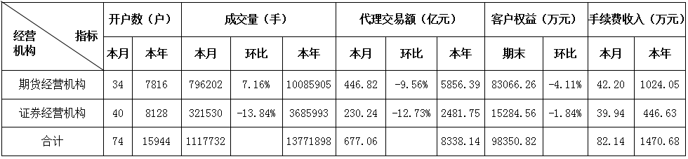 本月,开设证券账户1.16万户,开设资金账户-0.32万户。
