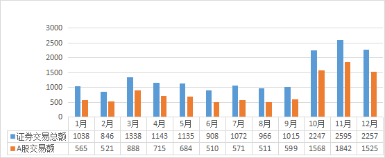 2024年,宁夏证券交易总额(包括A股、B股、北交所股票、公募基金、债券及其他证券等)16559.53亿元,同比增幅34.57%;其中A股交易额10499.31亿元,同比增幅33.34%。