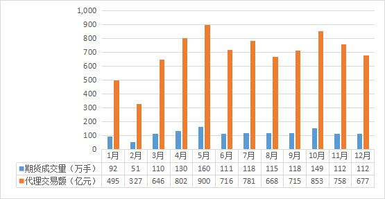 2024年,期货总体成交量1377.19万手,同比增幅11.97%;期货交易额8338.14亿元,同比降幅3.17%。