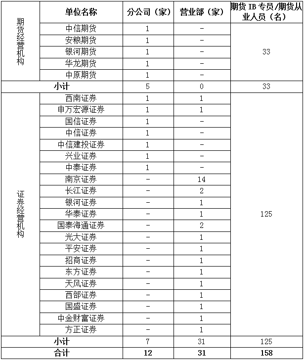 31 | 中信期货宁夏分公司 | 1 |