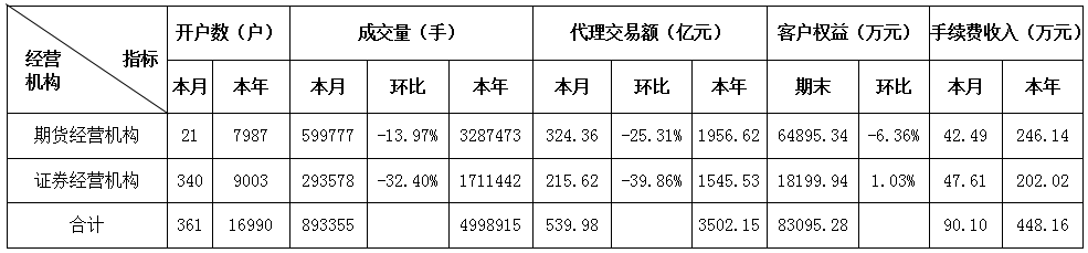 (数据来源:中国证监会网站、证监会机构监管系统、Wind资讯及辖区各证券期货经营机构、基金代销机构月度报表。)