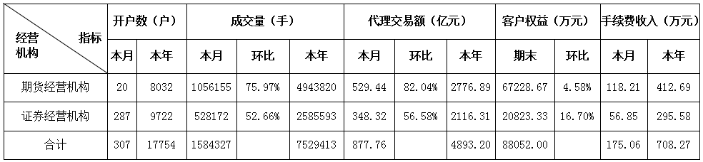 本月,开设证券账户1.47万户,开设资金账户0.99万户。