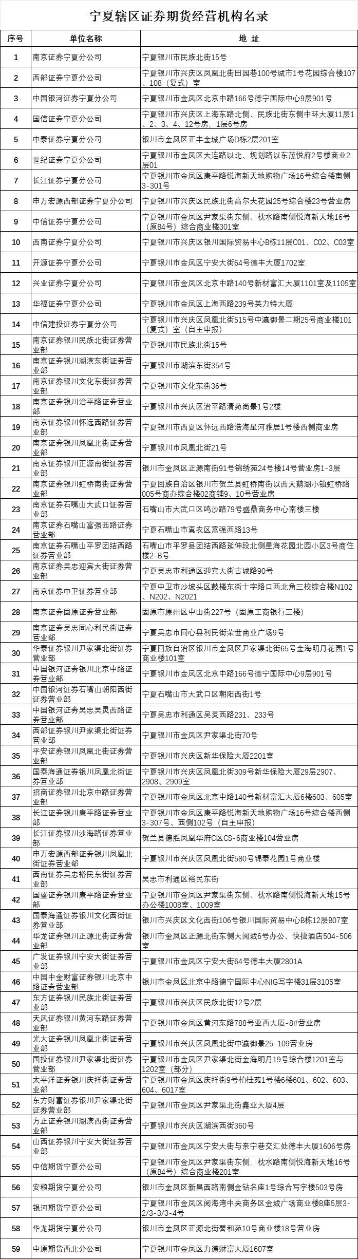 为切实?;ね蹲收吆戏ㄈㄒ?,防范非法证券期货活动风险,宁夏证券期货基金业协会提醒广大投资者,选择合法证券期货经营机构办理业务。