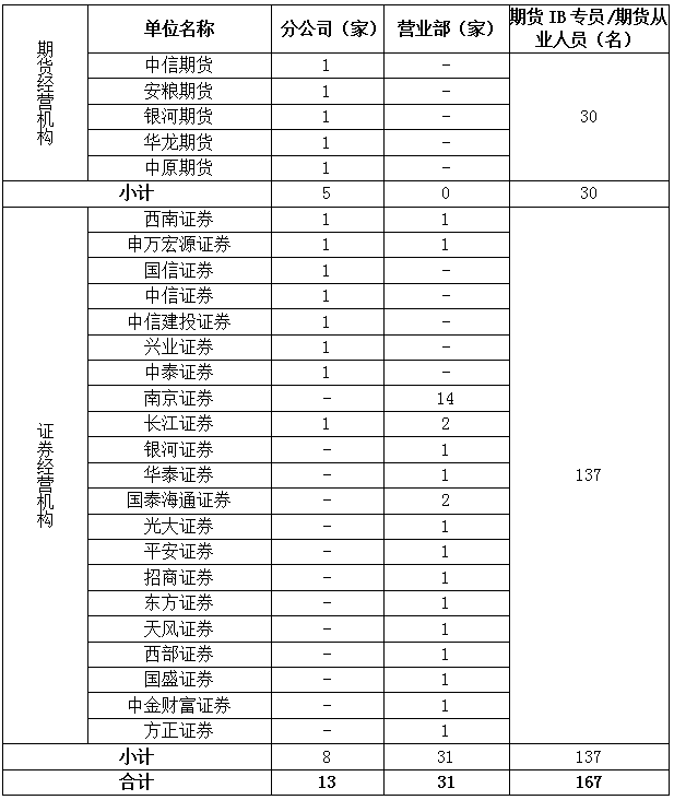 31 | 中信期货宁夏分公司 | 1 |